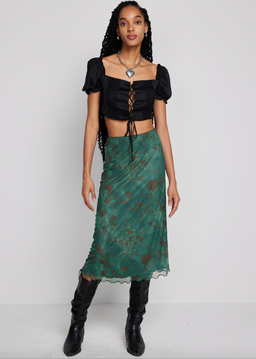 cider High Waist Mesh Floral Midi Skirt, $, available at Cider