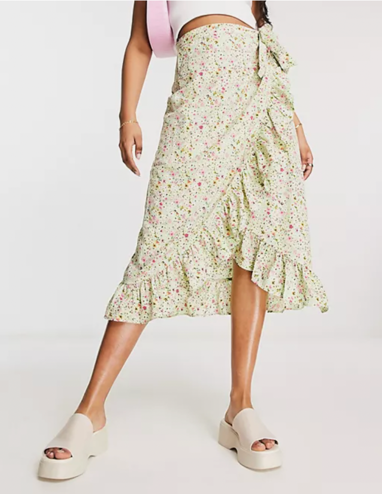 Similar to midi skirts with slits, wrap midi skirts can show some leg too. There are plenty of wrap styles out there, whether you want a fully adjustable skirt or a faux wrap one that solely gives the flattering cut of a sarong.