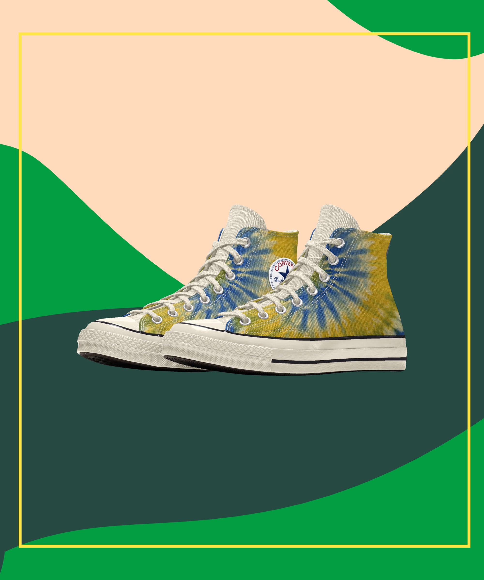 The Millie by You collection includes three tie-dye graphics — in black-and-white, yellow-and-blue, and green-and-pink palettes— which you can mix and match for a custom Chuck 70 sneaker design. There is also a tie-dye Chuck ankle patch that can be added to a solid-colored sneaker or one of the aforementioned designs for maximum tie-dye impact. For the campaign, Brown’s brother Charlie shot her modeling the designs at home in Atlanta, with her adorable dog, Winnie, also making an appearance.