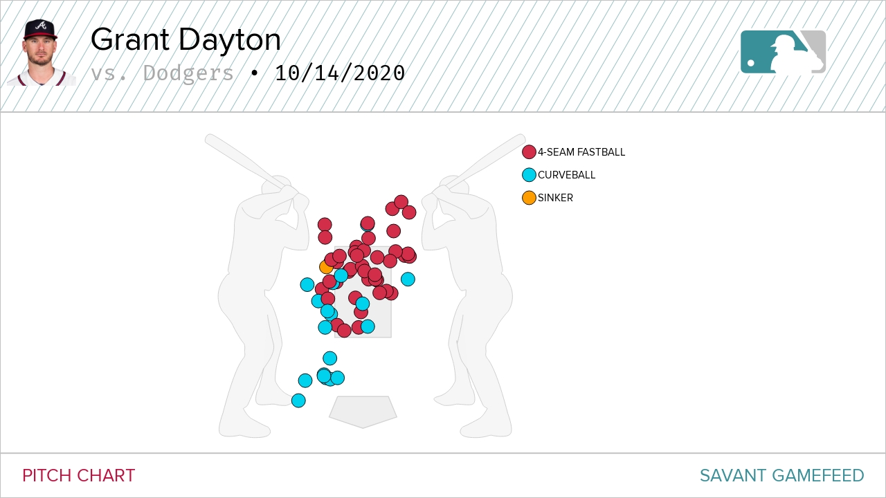 The issue for Wright was all location, as his sinkers and sliders either missed well outside the zone or sat up on the plate for Dodgers hitters to tee off on: