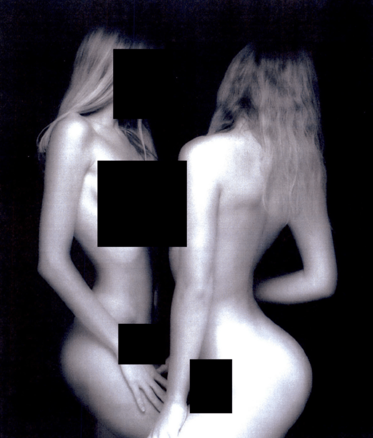 One file alone contains dozens of censored images of naked women, with no context provided regarding when or where the photos were taken.