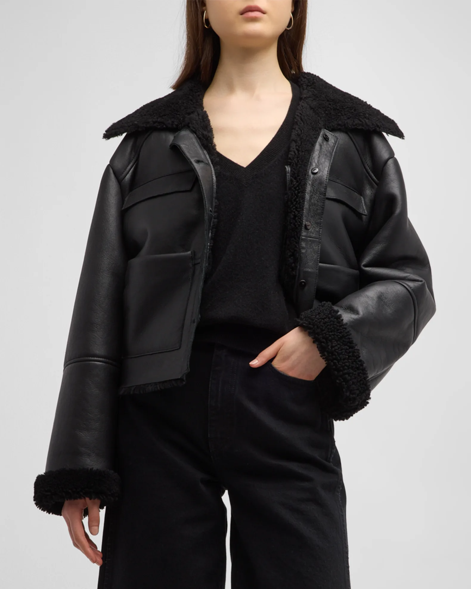 LOULOU STUDIO Bugur Leather Aviator Jacket with Shearling Trim, $, available at Neiman Marcus