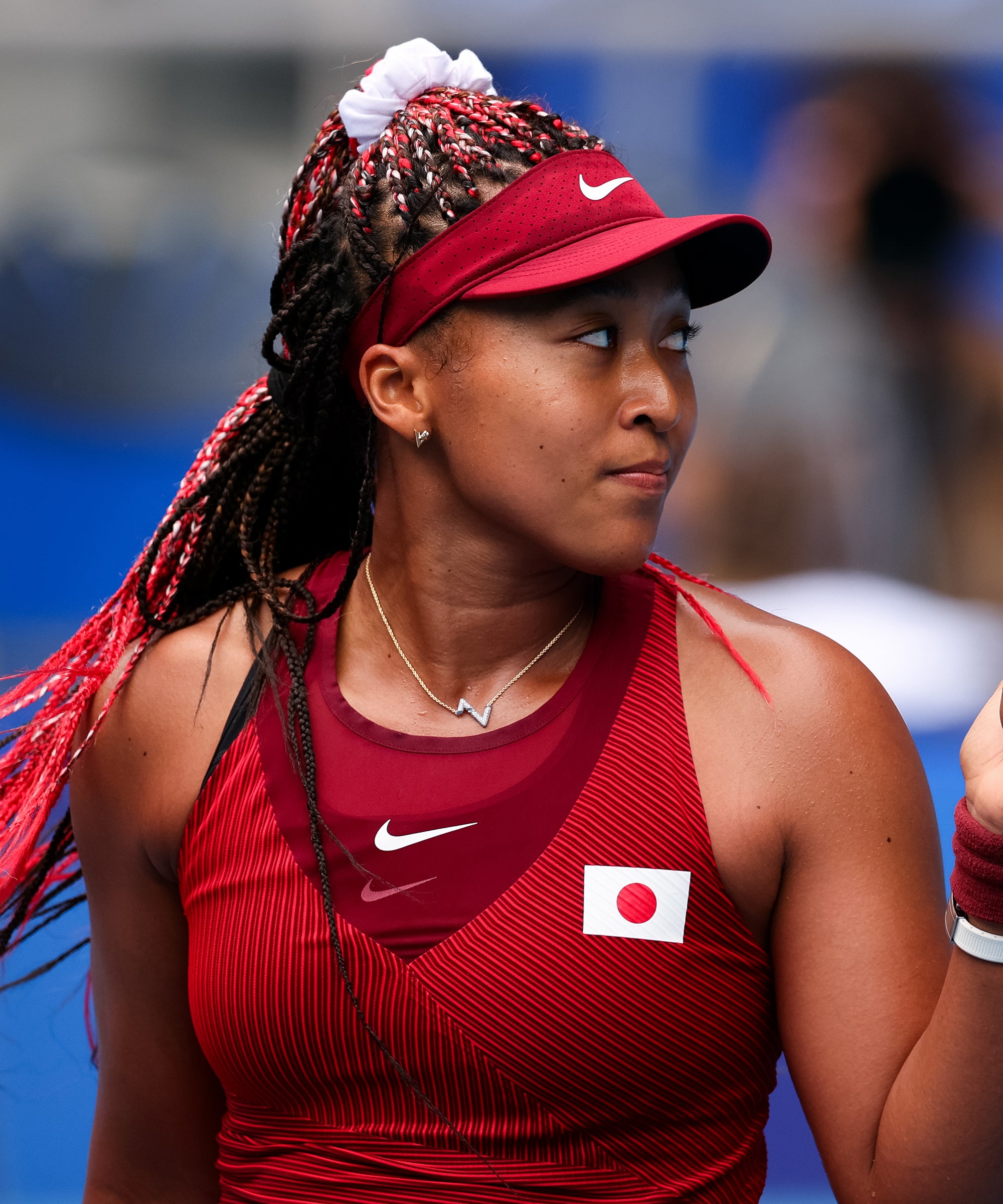 TOKYO, JAPAN – JULY 26: Naomi Osaka of Japan salutes her team after winning during the Women’s Tennis Round 2 match between Naomi Osaka and Viktorija Golubic on Day 3 of the Tokyo 2020 Olympic Games at Ariake Tennis Park on July 26, 2021 in Tokyo, Japan. (Photo by Pete Dovgan/Speed Media/Icon Sportswire via Getty Images)