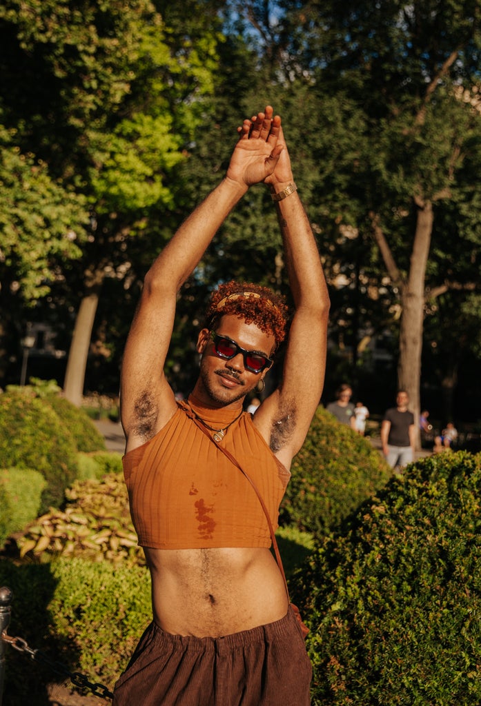 Vert and Tran aren’t the only innovative stylists when it comes to summer street style fashion in New York. In the midst of the heat wave, we spoke to 11 people in Manhattan’s Washington Square Park about what inspired their looks and how they dress to stay cool during the hottest of days. From discussing their outfits of the day to sharing their beat-the-heat summer essentials, one thing was a common theme: each person’s style was a reflection of who they are.