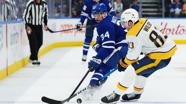 Toronto head coach Craig Berube called a timeout after Nashville scored goals 44 seconds apart in the second period to erase a 2-0 deficit. The Maple Leafs pushed ahead when Tavares scored his first goal of the season by banging home a loose puck after a nifty give-and-go between Nylander and Ekman-Larsson. McMann made it 4-2 through 40 minutes.