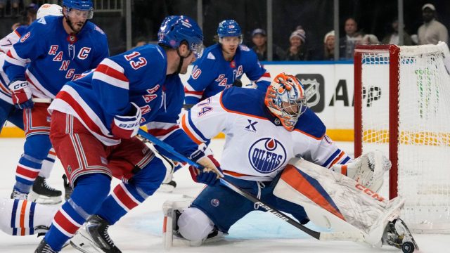 Skinner joined Washington’s Charlie Lindgren and the Pittsburgh Penguins’ Arturs Silovs in blanking New York over the past eight days. His best save early came after Evan Bouchard turned the puck over, and Skinner denied Will Cuylle on a high-danger scoring chance in front. He also gloved a shot from Sam Carrick with 2:31 left.
