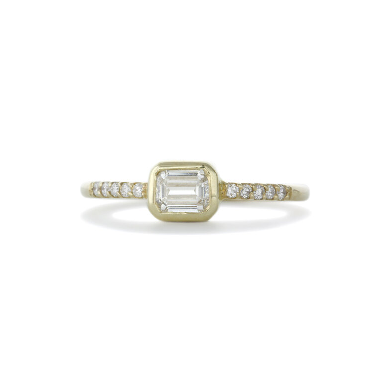 Sophie Hughes 14k Yellow Gold East West Emerald Cut Diamond Solitaire, $, available at Sophie Hughes