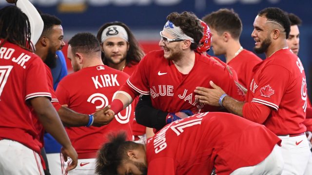 Down 1-0, the Blue Jays didn’t find a breakthrough until the fifth, when Danny Jansen reached on a hit by pitch, advanced to second on a passed ball and after a George Springer walk, came around on a Guerrero RBI single up the middle.