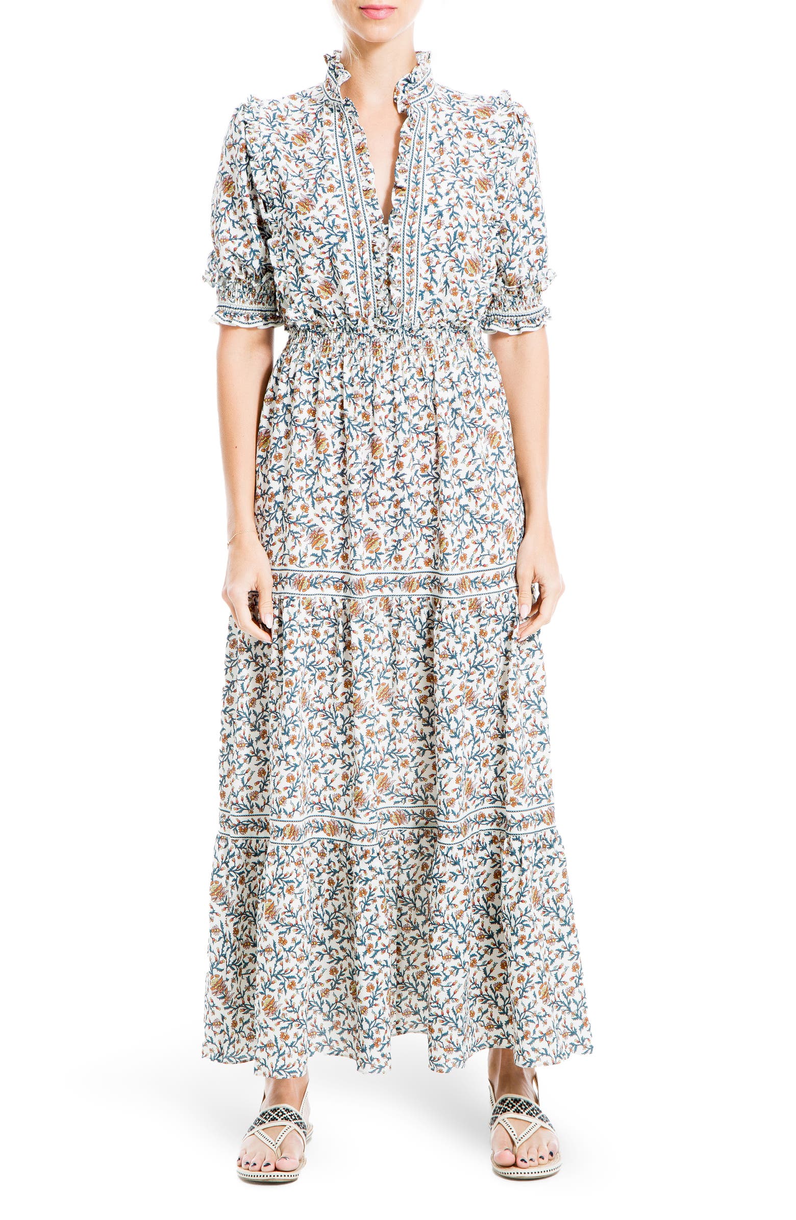 Max Studio Ruffle Collar Print Tiered Maxi Dress, $, available at Nordstrom Rack