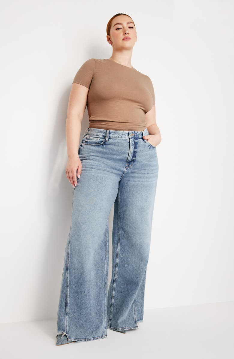 Good American Good Skate Ripped Hem Wide Leg Jeans, $, available at Nordstrom