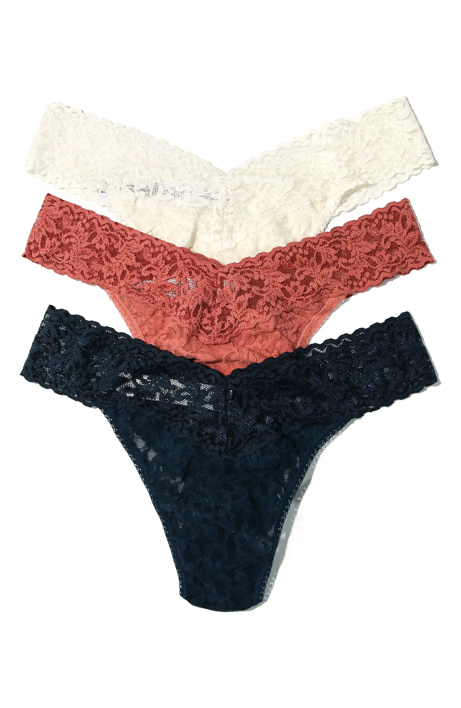 Hanky Panky Assorted 3-Pack Lace Original Rise Thongs