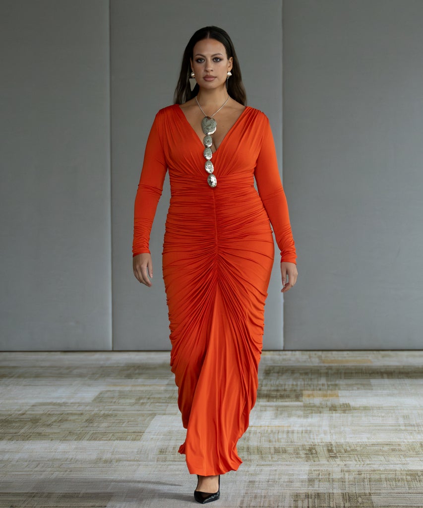 For Collins, who started the brand in 2006, building a collection for customers of all sizes is both a labor of love and a practical financial matter — after all, he’s building a label he wants to last. “I have to create clothes that people see themselves in, that they want to wear. With that, I’m becoming a successful business,” he noted. “I also just love dressing people with curves, because that’s what I started doing, that’s how I started my career. So I’m not going to — because of what, industry standards? — I’m not going to include that? And I love women. I love beautiful women with curves. I tell the stories of how I feel, and my work is a representation of myself.”