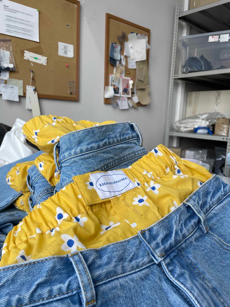 When designer Ksenia Schnaider returned to her apartment in Kyiv at the end of March for the first since the invasion, the dishes that she and her family had left out on the February morning they evacuated were exactly where they had left them. According to Schnaider, after a “long and dangerous” journey, the designer reached Germany, staying in more than a dozen apartments along the way. Her brand, beloved for its avant-garde denim creations, stopped operating for weeks. Donations from industry friends and customers, as well as projects like an upcoming collaboration with denim brand DL1961, kept the business afloat.