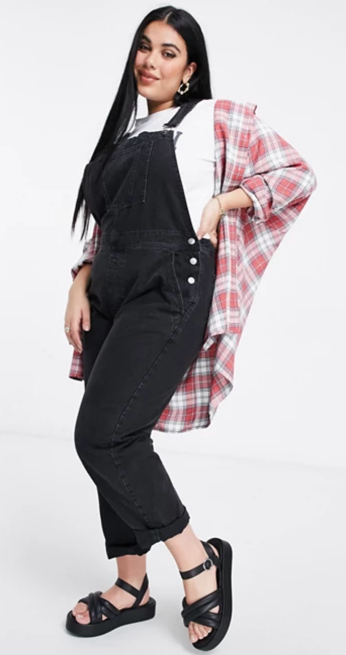 ASOS DESIGN Curve Denim Overalls In Washed Black, $, available at ASOS