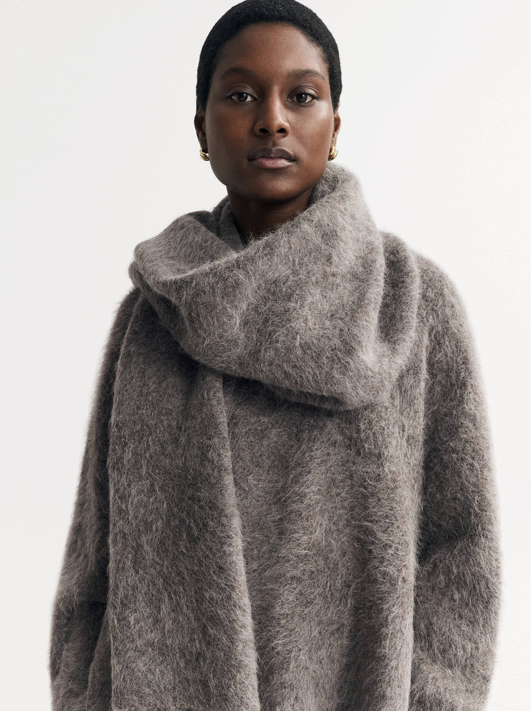 This season, brands are doubling down on the trend, offering everything from ultra-plush styles made from faux fur and teddy-like shearling to fuzzy brushed alpaca and vibrant, ribbed silhouettes that rival your favorite throw. So, instead of splurging on yet another pair of forgettable gloves or a one-size-fits-all beanie, opt for an oversized scarf — it’s a budget-friendly way to embrace the scarf coat trend without committing to (or investing in) the full look. Keep scrolling to shop 24 of the season’s best options for every style and sensibility — you’ll be covered, both literally and sartorially.