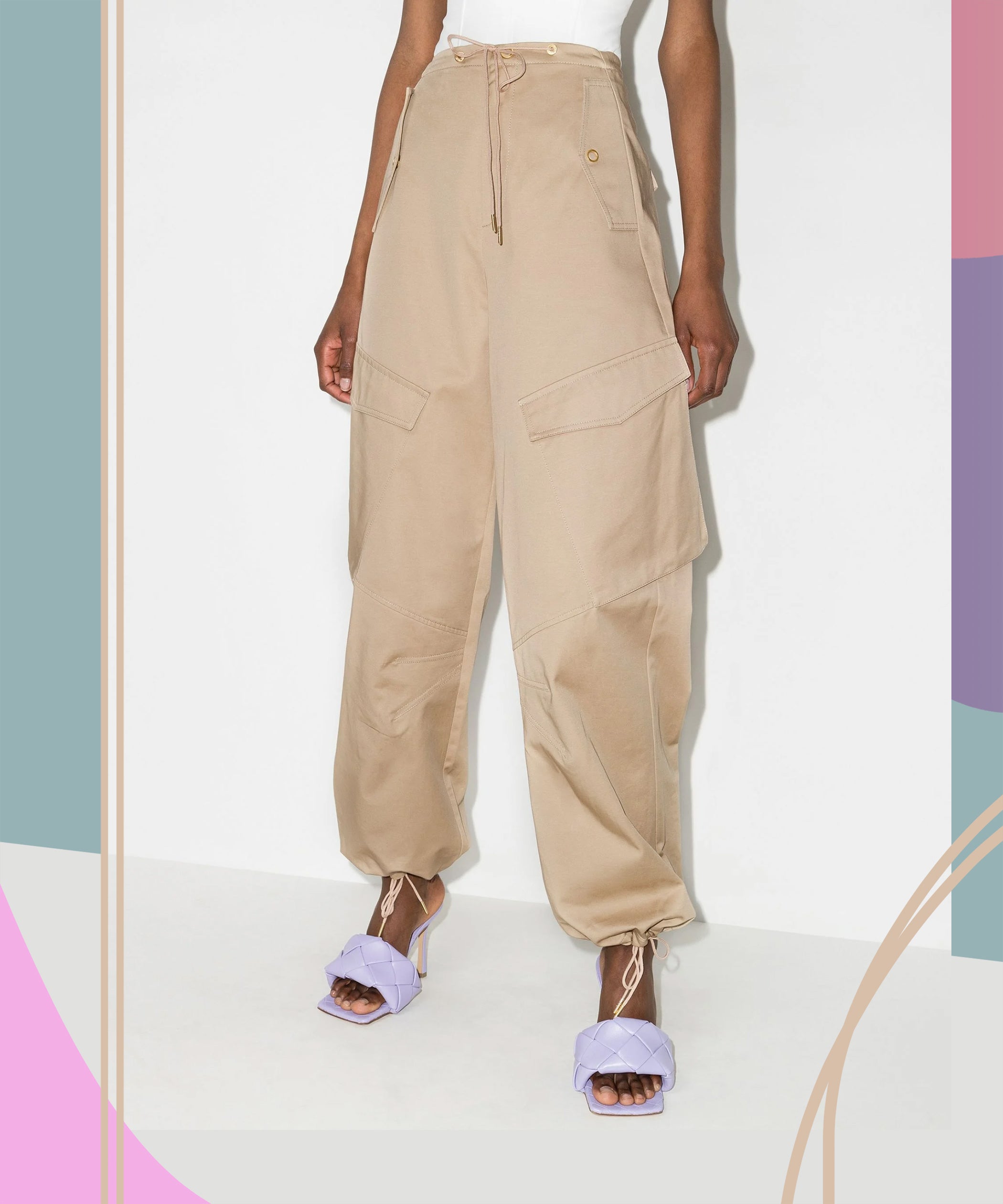 Unlike the parachute pants of years past — balloon pants featuring an exaggerated drop crotch (also known as Hammer pants thanks to MC Hammer) — the versions available today are more elevated and polished. Paired with ballet flats or loafers and combined with cool, vintage jackets or structured blazers, they appear put-together — even if they’re held up by an elastic waist and made from sporty material. Even better, with drawstrings at every entrance point, parachute pants are versatile in that they can be changed from wide leg to fitted at the ankle, and can be worn high- or low-waisted.