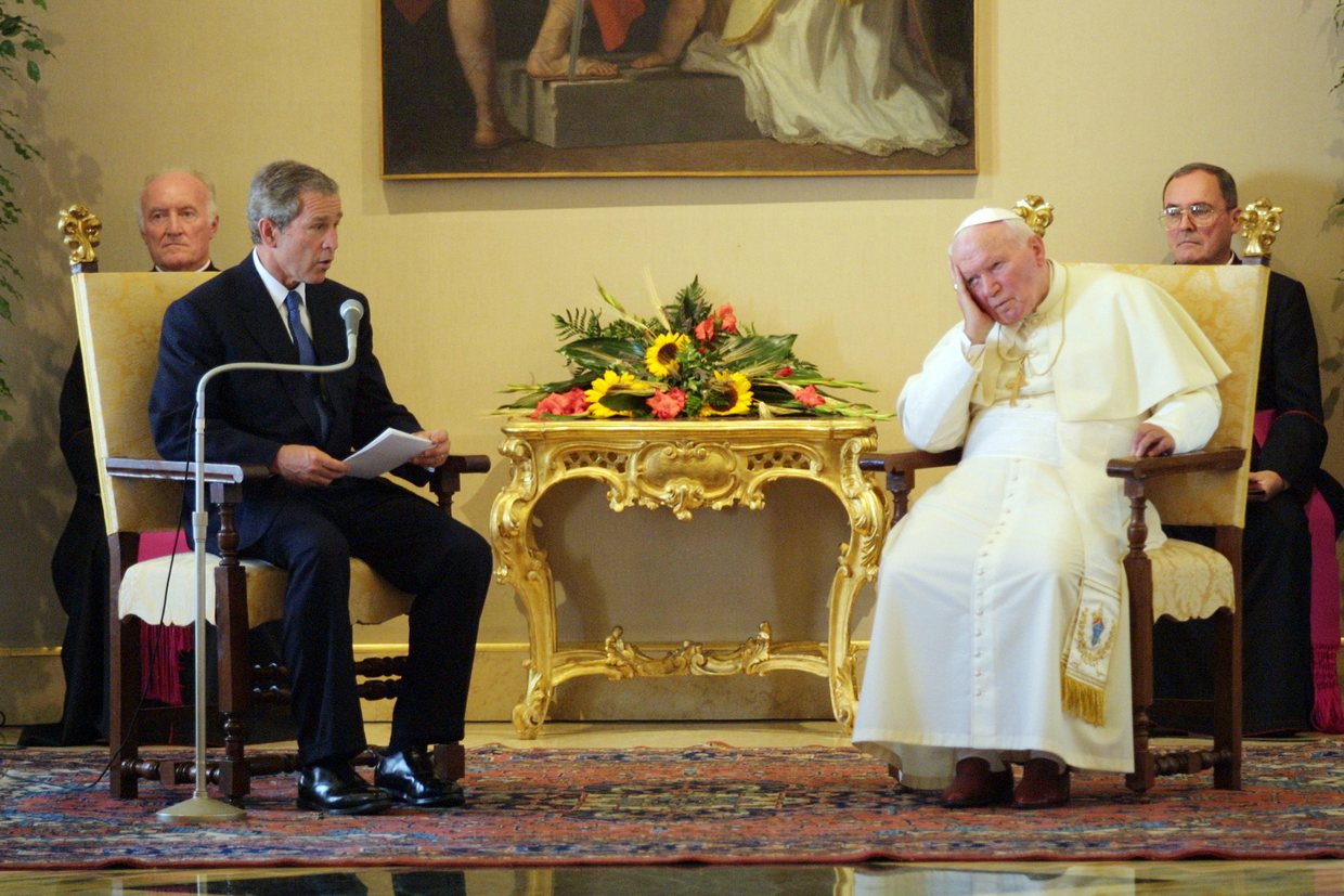 When Bush visited the Vatican in 2004, John Paul II used the occasion to reiterate his opposition to the war, prompting the then so-called ‘leader of the free world’ to leave the meeting without the usual photo op of a gift exchange.