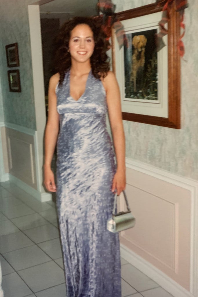 “I went with two of my best friends to one of their proms, and we made it the ultimate girls’ night. The mid-to-late 2000s were horrible for body positivity, and I struggled a lot with the fact that, at 5′8″ and while developing womanly curves, I was inherently going to always be bigger than most of my shorter, tinier friends. Luckily, mermaid silhouettes were basically made to accentuate and embrace a more voluptuous shape, and I think this dress really helped me see that my body, though not the stick-thin version I craved, was actually beautiful.” — Annie Black, Social Editor