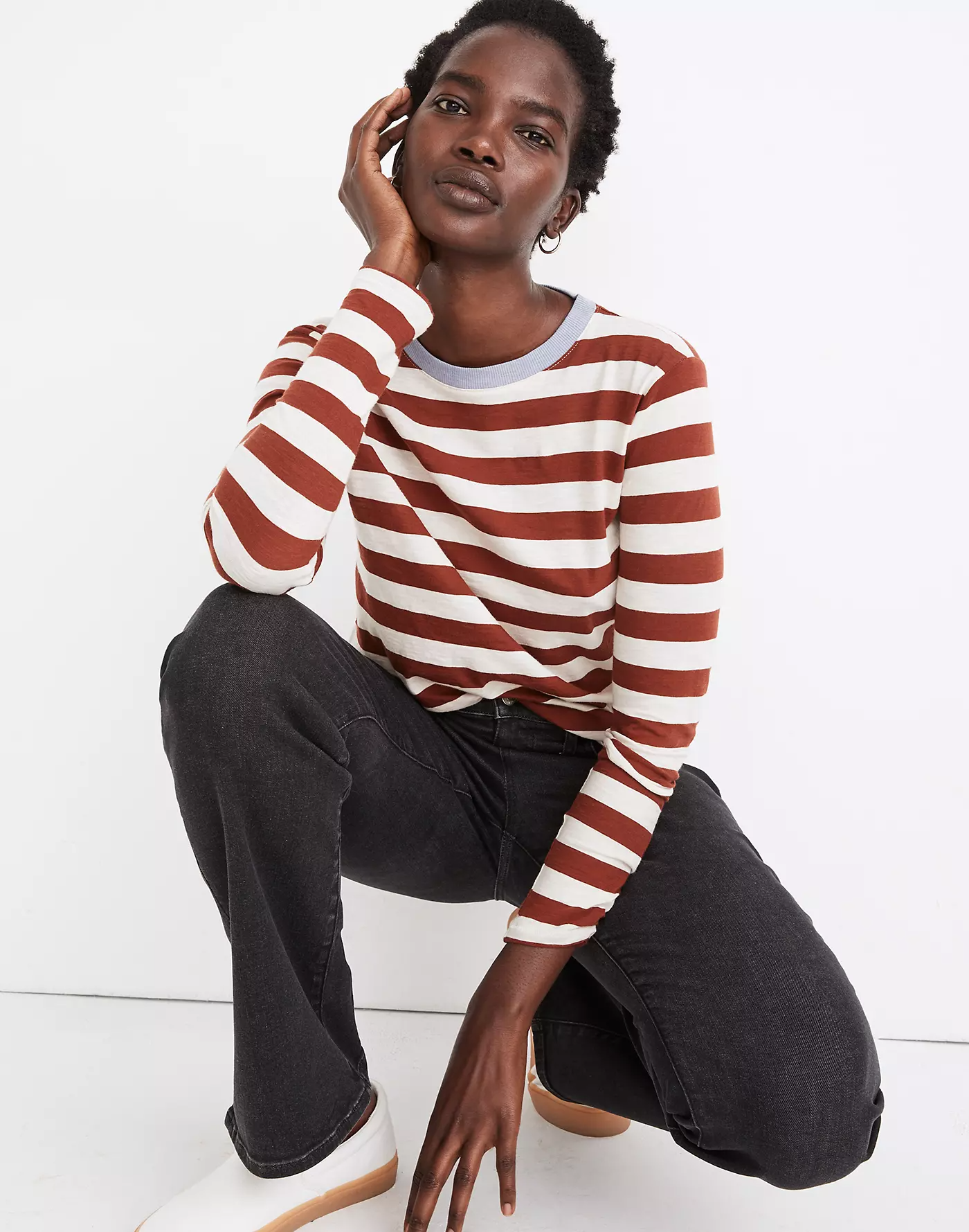 Madewell Whisper Cotton Rib-Crewneck Long-Sleeve Tee, $, available at Madewell