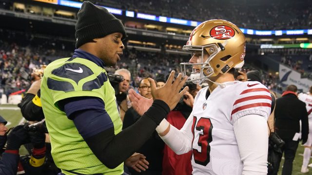 Running back Christian McCaffrey was a huge support to his young signal caller, gashing the Seahawks for 119 yards on 15 carries, while also hauling in one of Purdy’s touchdown passes.