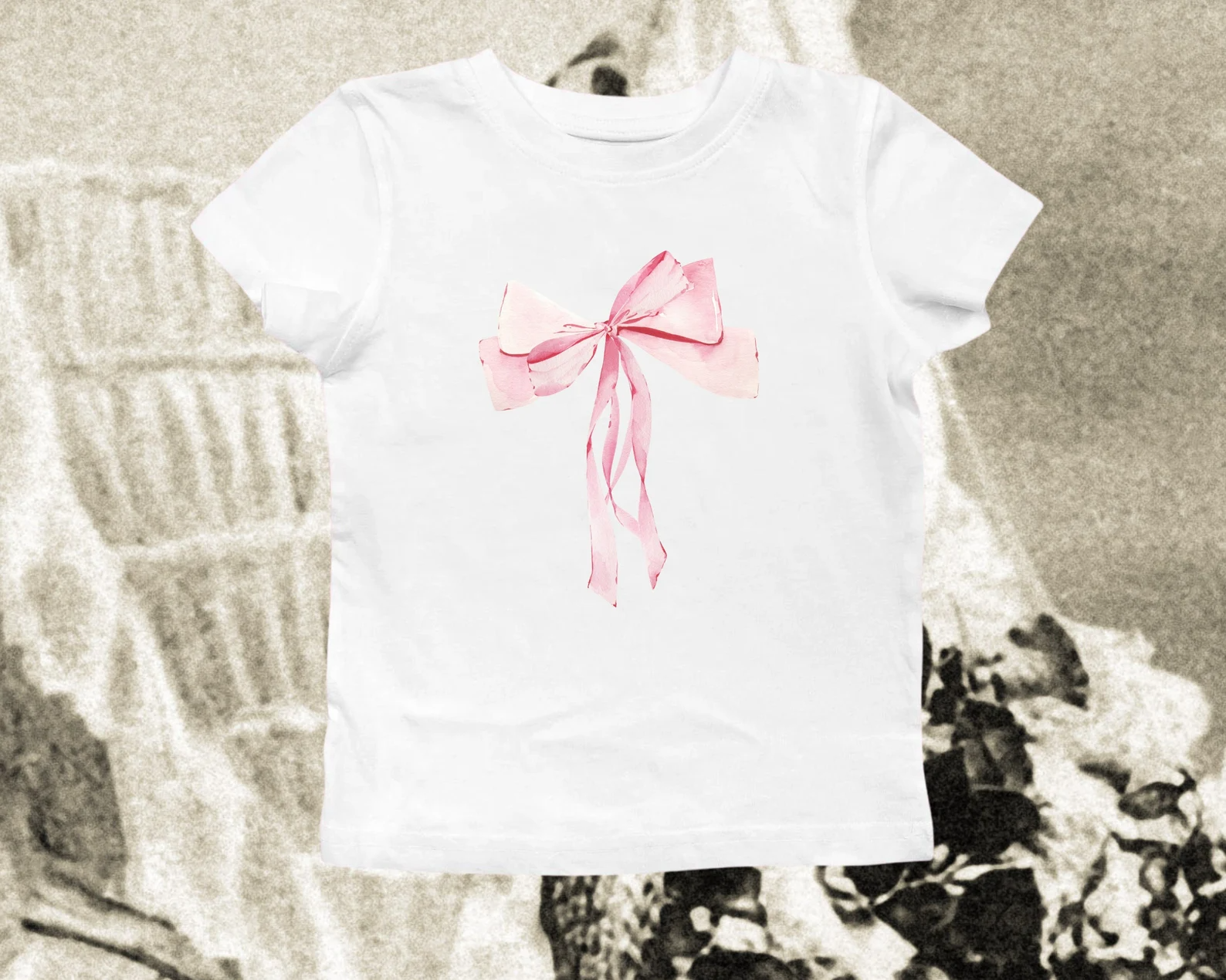 AleireShop Coquette Pink Bow Baby Tee, $, available at Etsy