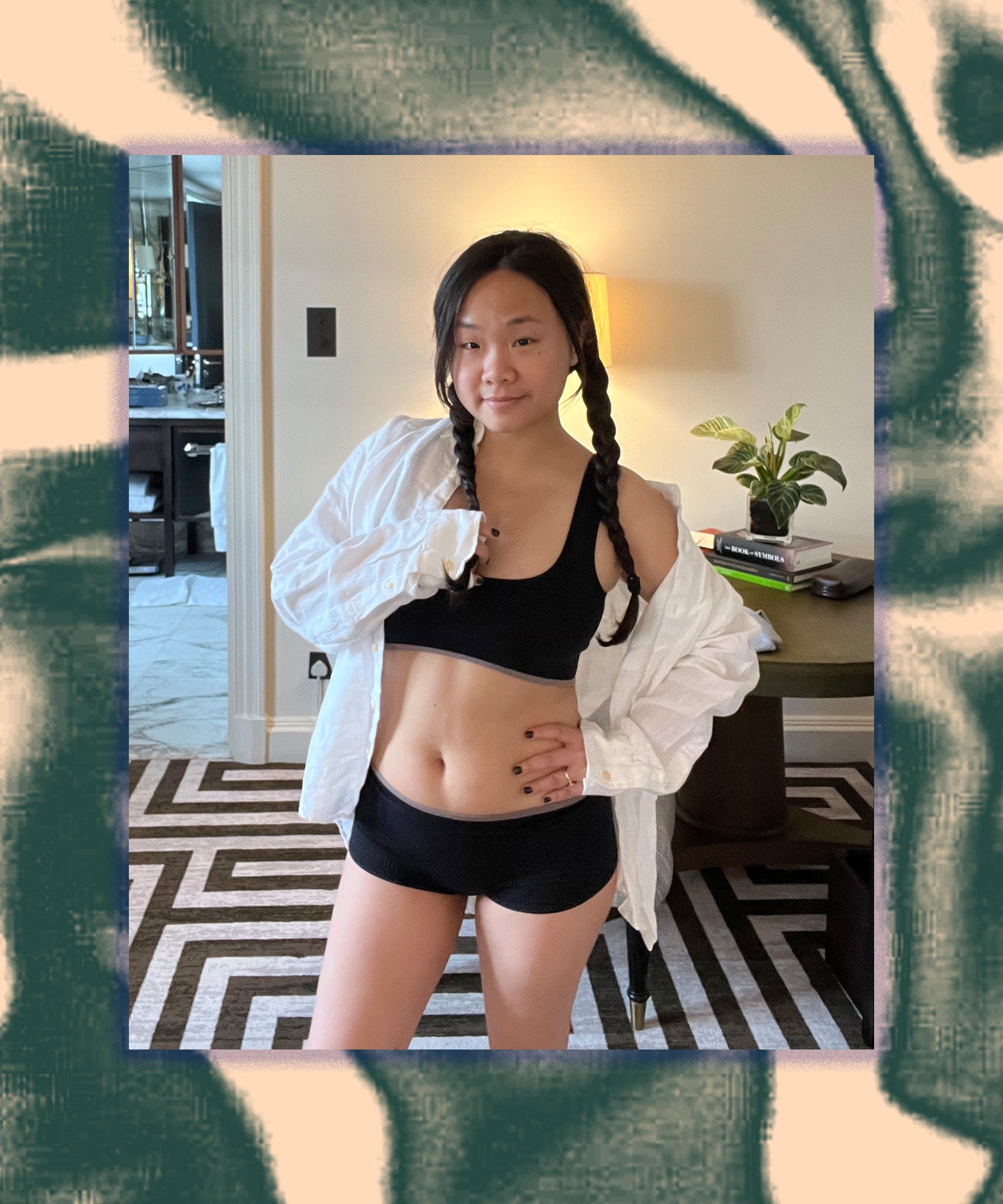 The Lounge Rib Boyshort underwear was also cute while still being full-coverage — I love a lingerie-ish set that you can actually keep on for hours. The underwear is definitely too high to wear under most bottoms, but I liked them for a cozy around-the-house option for when I don’t want to go commando. The next day, I tested the bra out running errands, and while it doesn’t really give you the silhouette of a wired bra, it worked fine under a baggy sweatshirt. I also ended the day with no aches and pains or uncomfortable digging. I’ll probably still stick to my few precious scoop-back sports bras for my errands, but this bralette is definitely a great for weekends (and, let’s be real, WFH) option that is way softer than a workout top. And it doesn’t hurt that the set is the right amount of cute and sexy, too.”