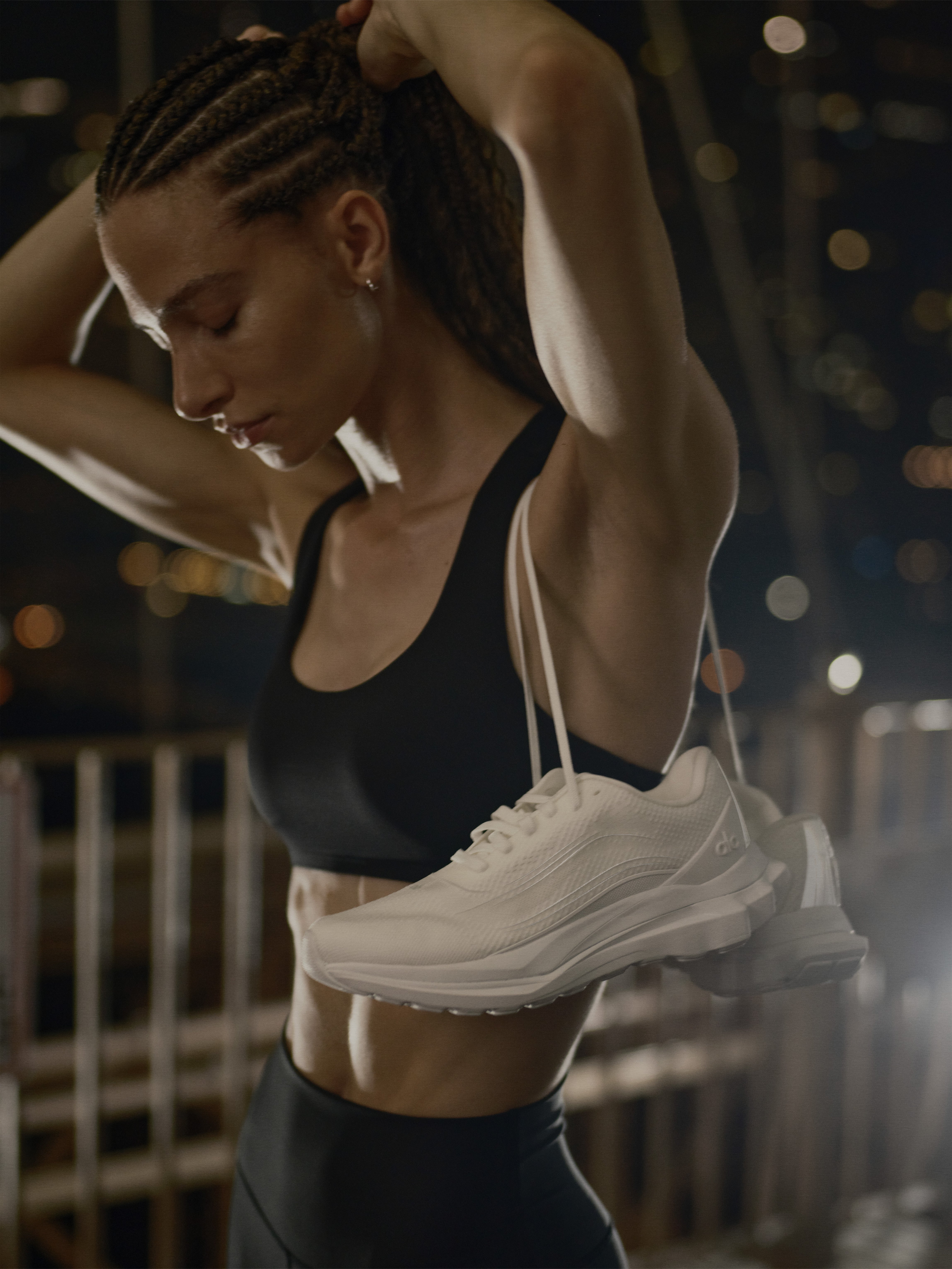 Athleticwear brand Alo is entering new terrain: running shoes. As already seen on Kylie Jenner’s Instagram, the Alo Runner is a performance shoe designed for running whether you’re in your neighborhood, on a beach, on a track, or on a trail. The sneaker is available in black and white colorways. It also boasts breathable mesh made with 70 percent recycled materials, a cushioned heel, multi-terrain grips for extra traction, and reflective details. The Alo Runner will be available on September 5 for $185.