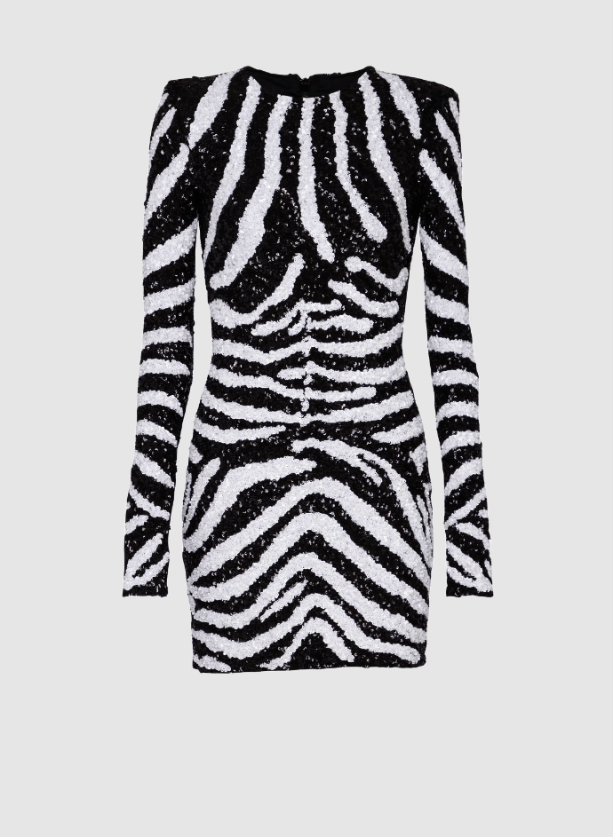 Disney x Balmain Short Two-Tone Zebra Sequin Dress, $, available at Balmain