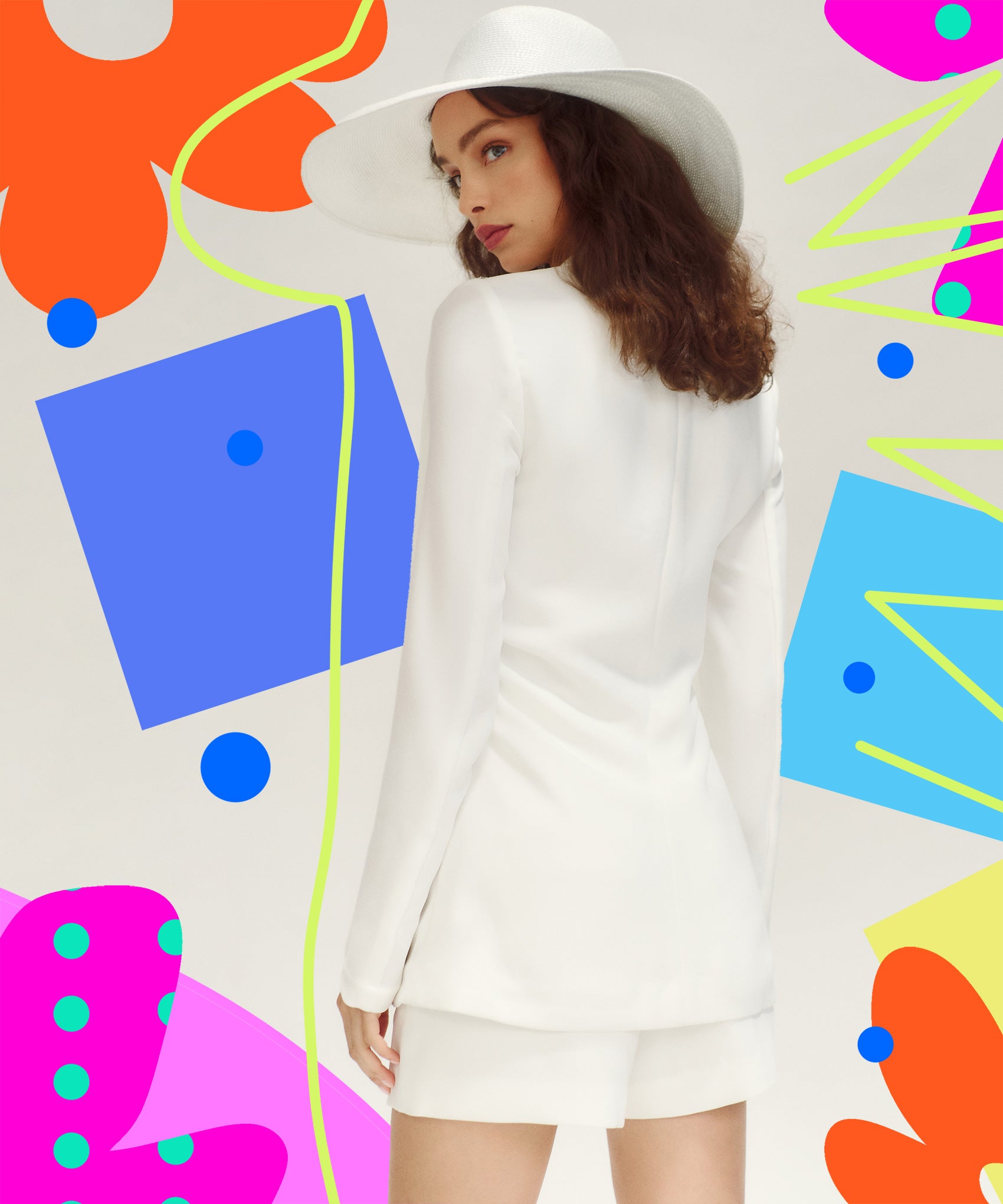 Available now, the collection is made up of seven looks including a ‘70s-inspired bridal suit — similar to the Yves Saint Laurent outfit Jagger wore to her 1971 nuptials to Mick Jagger — and a strapless A-line gown that exudes a Grace Kelly-esque old-Hollywood aesthetic). There are also wedding jumpsuits and two-piece sets that would make a good addition to a bride’s wardrobe, whether to walk down the aisle or for one of the celebrations surrounding the big day. What’s more, according to the press release, the majority of the limited-edition styles are made from deadstock fabric. For the launch, Reformation is also adding new iterations of their bridal shoes, which include stacked platforms, one of 2022’s biggest trends, in metallic hues, as well as satin.