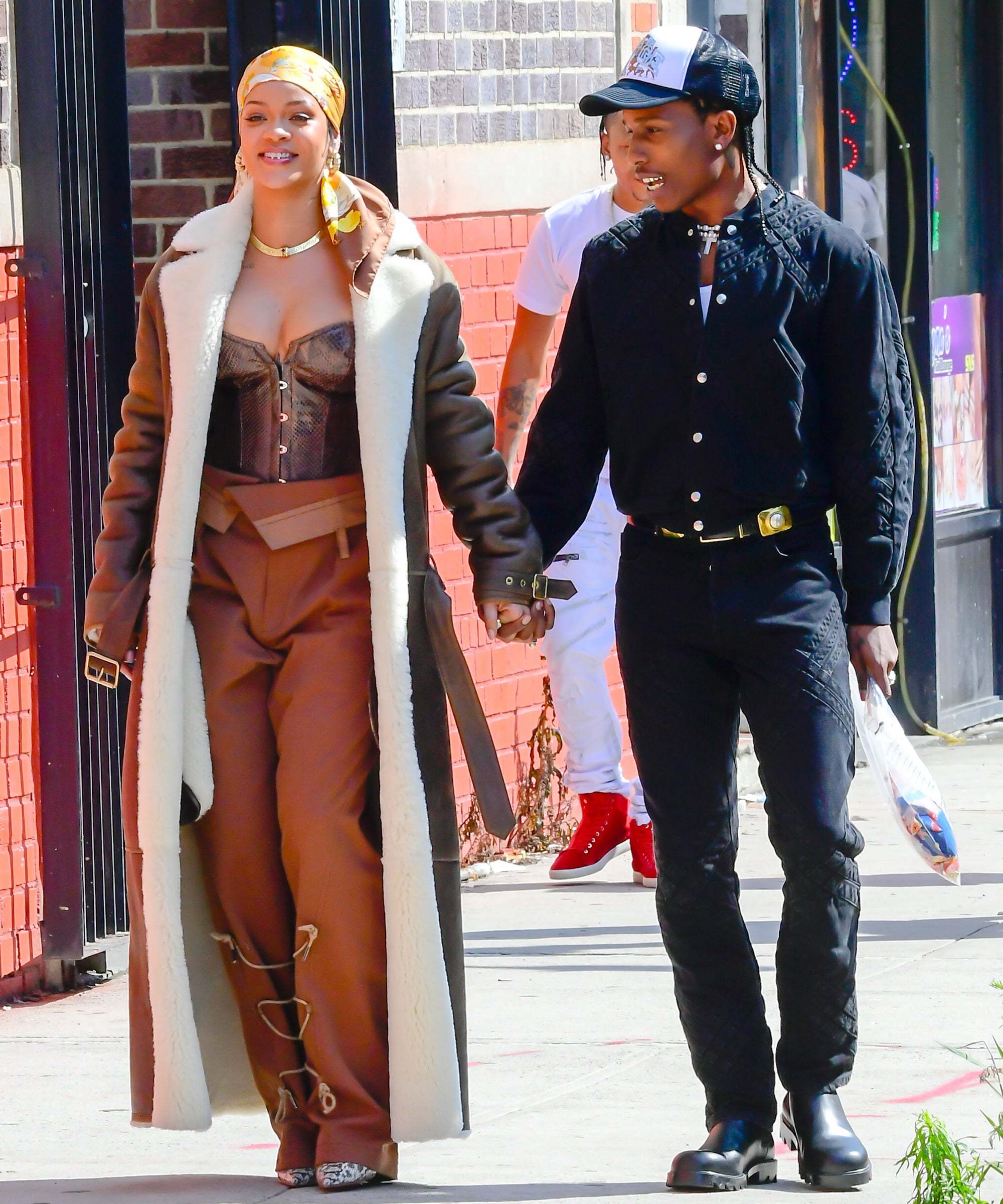 Hot girl summer is well underway, but Rihanna’s latest looks are already giving us a sneak peek at hot girl fall. Despite the simmering New York heat this weekend, the “Love On The Brain” singer stepped out to work on an upcoming music video (no word yet on whose video it is!) with boyfriend A$AP Rocky, donning a cold weather-ready outfit.