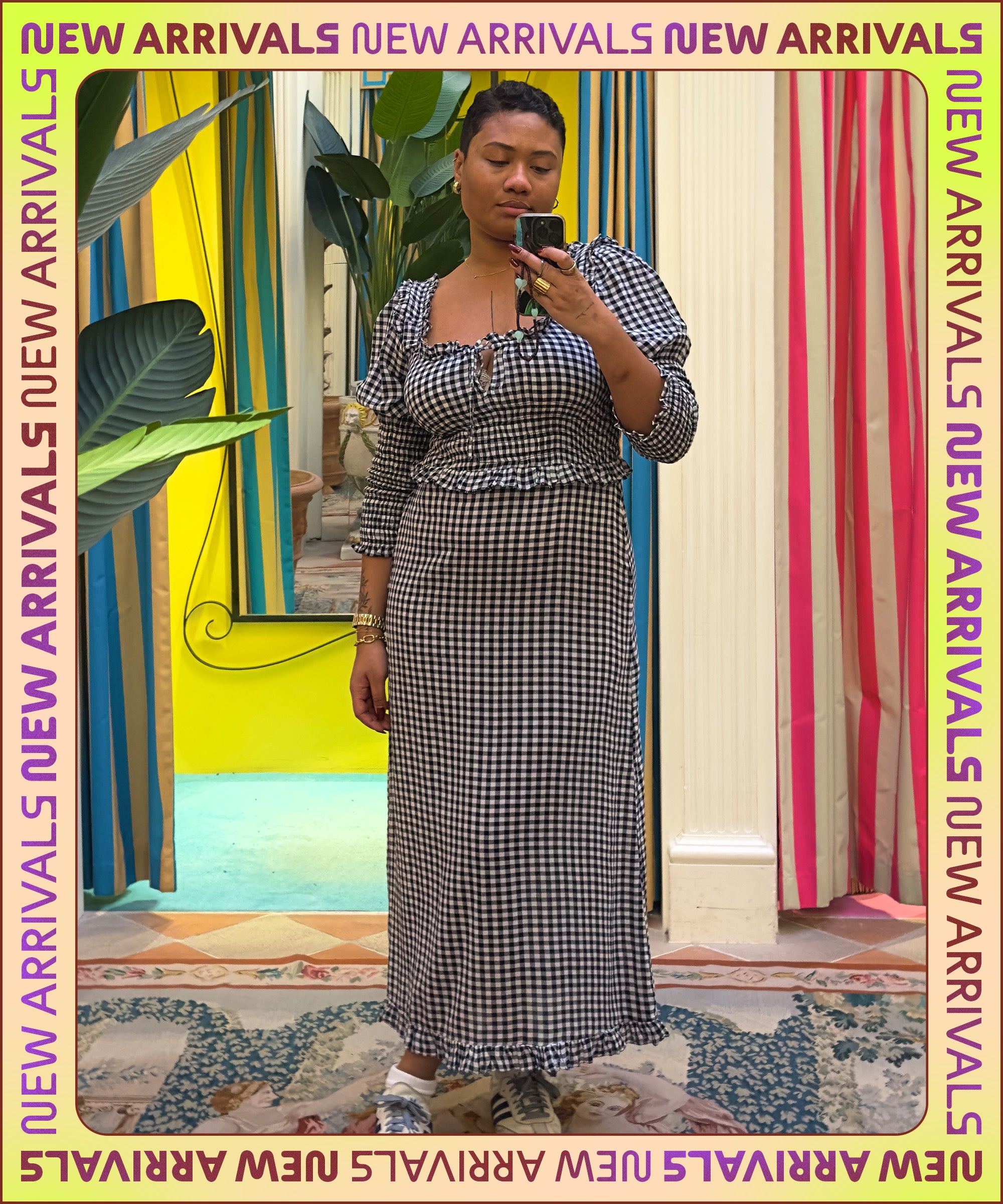 To check out Rixo’s newest styles, I made my way to Rixo’s London flagship (which boasts interiors as bright and colorful as its dress prints). I was greeted by flowy skirts, retro accessories, and mannequins in effortless pattern clashes that begged me to try them on. So, in honor of the iconic 2000s-movie outfit montage, I did just that. Ahead, styles I would buy.