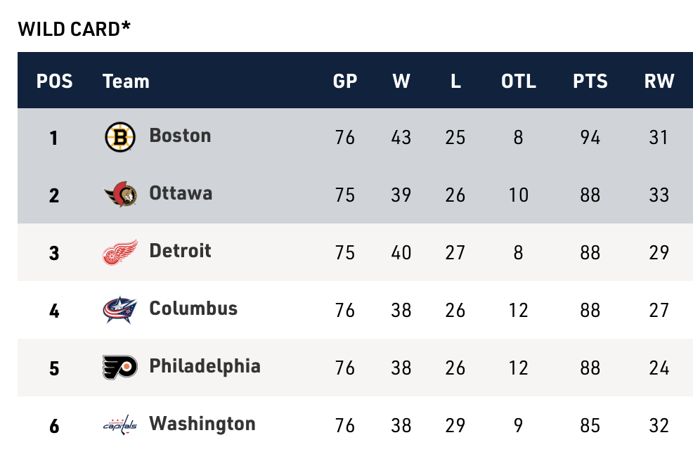 The Flyers bounced back from a deflating loss to the Detroit Red Wings on Thursday with a huge win over the Islanders. There are now four teams tied at 88 points, including the Senators, who hold the tiebreaker for the second wild card spot. The Islanders, with 89 points, are far from safe in the third spot in the Metro as the Flyers and Blue Jackets can clinch through that path, too.