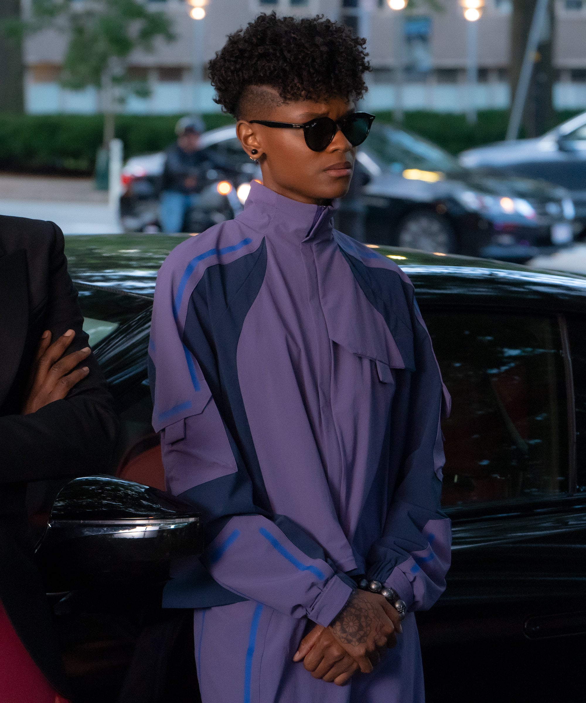 Ruth E. Carter: “This is a film about grief, especially seen through the eyes of Shuri and I feel like we didn’t bring too much attention to the clothing. We approach this from more of a somber color palette to bring more of the attention to the emotions of the scenes. We started with grays and purple (the royal color), creating the tracksuit that she would wear on the motorcycle together. However, it’s not bright and shiny, instead more of a muted purple with some blue in it. We didn’t want to disturb the emotionality of the story and S.E.E.D really understood that it is more than just putting a product on a screen but how the designs could play into the bigger picture of the film itself.”