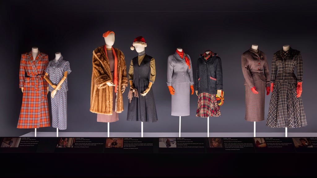 While most of the looks from the exhibit are the original pieces and multiples that Powell used on the film sets, there was a piece that had to be recreated for the show — and it’s arguably one of the costume designer’s most recognizable works: the fur coat worn by Cate Blanchett’s Carol character.