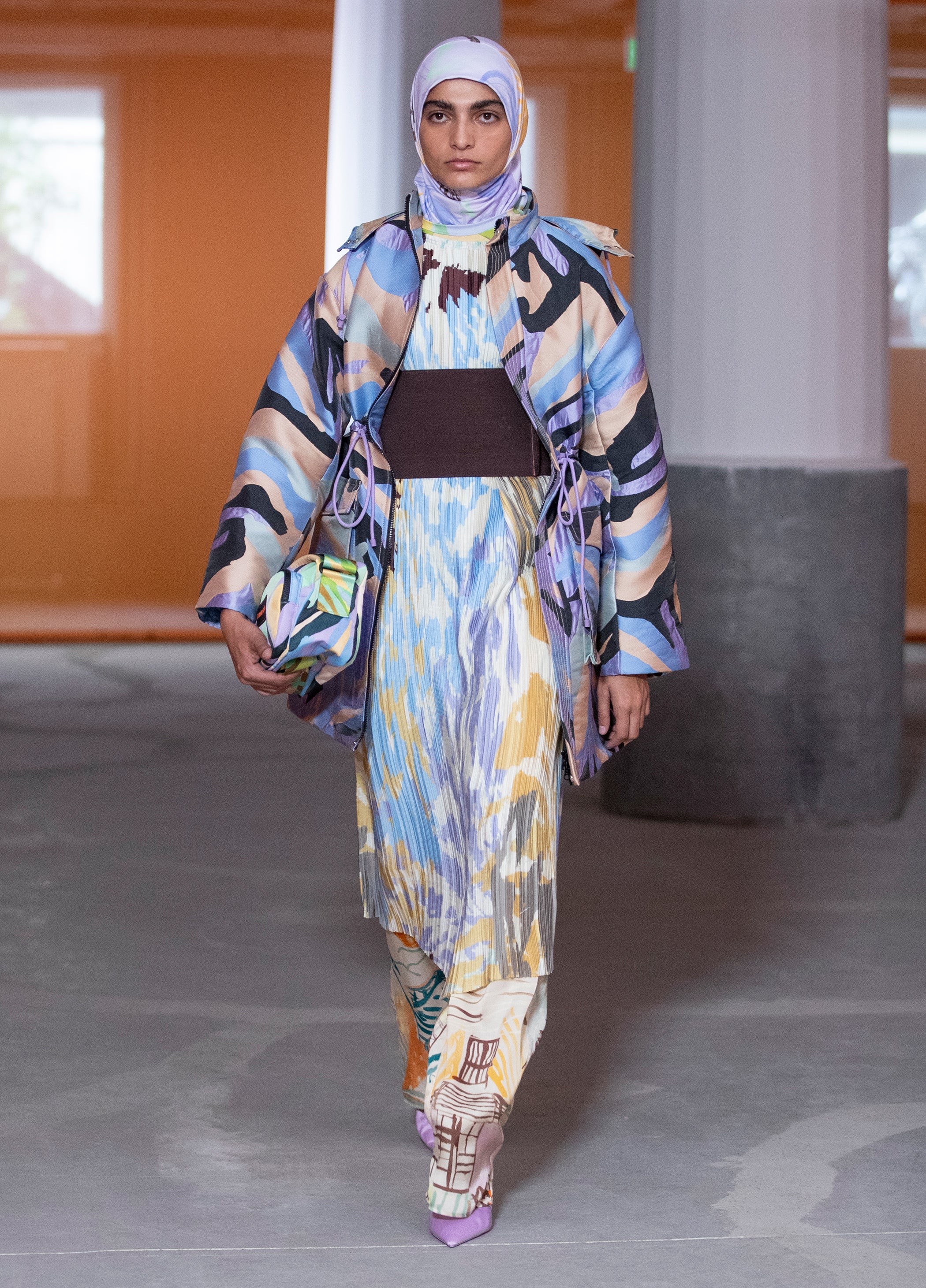 You need no further proof, that the “Copenhagen fashion scene [is]much more fascinating and vibrant,” than Stine Goya’s latest show which featured mismatched colors and even more prints. While the label has been showing a variety of patterns since its inception, the difference this season was in the intensity of hues and the way in which different prints were combined. Think: A single look featuring three abstract prints — a pastel swirl vest, a geometric-embellished sweater vest, and a skirt covered in painterly strokes. Elsewhere there were bold checkerboard knits combined with ditsy flowers.