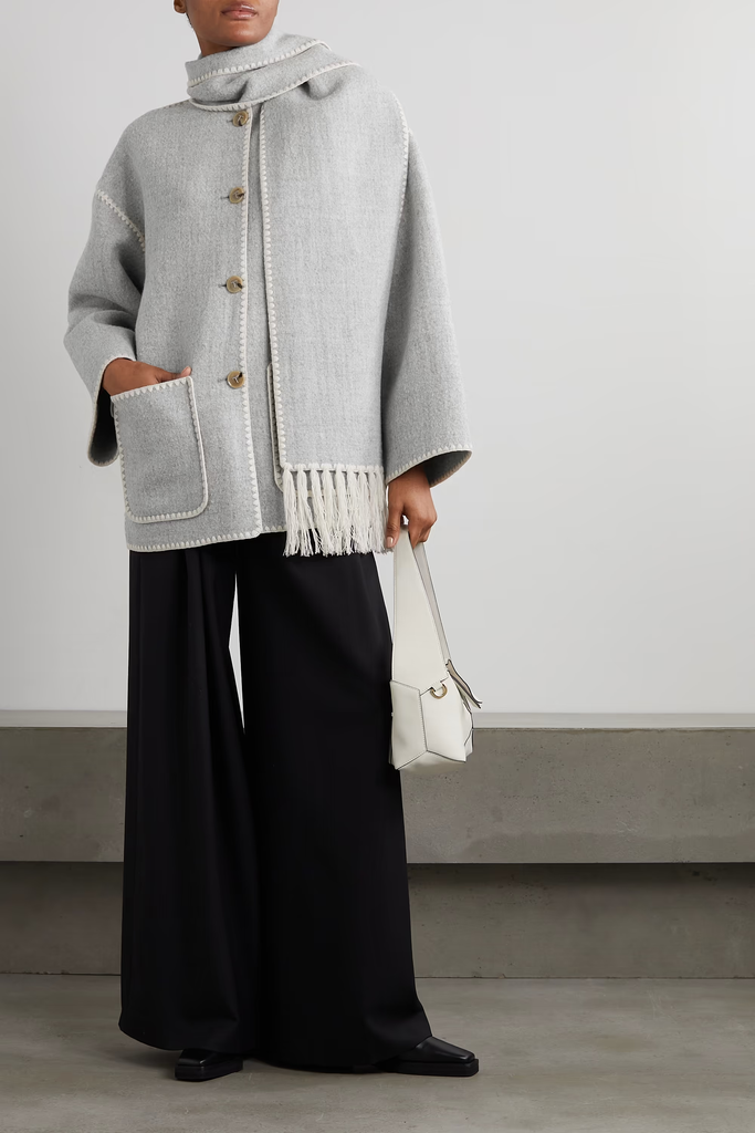 HeatTech leggings, turtleneck, North Face jacket, scarf, beanie. That’s the winter essentials lineup I return to again and again when bundling up for the cold-weather season. But, this fall, a new coat trend entered the picture and threw my go-to puffer into question: Totême’s scarf jacket.