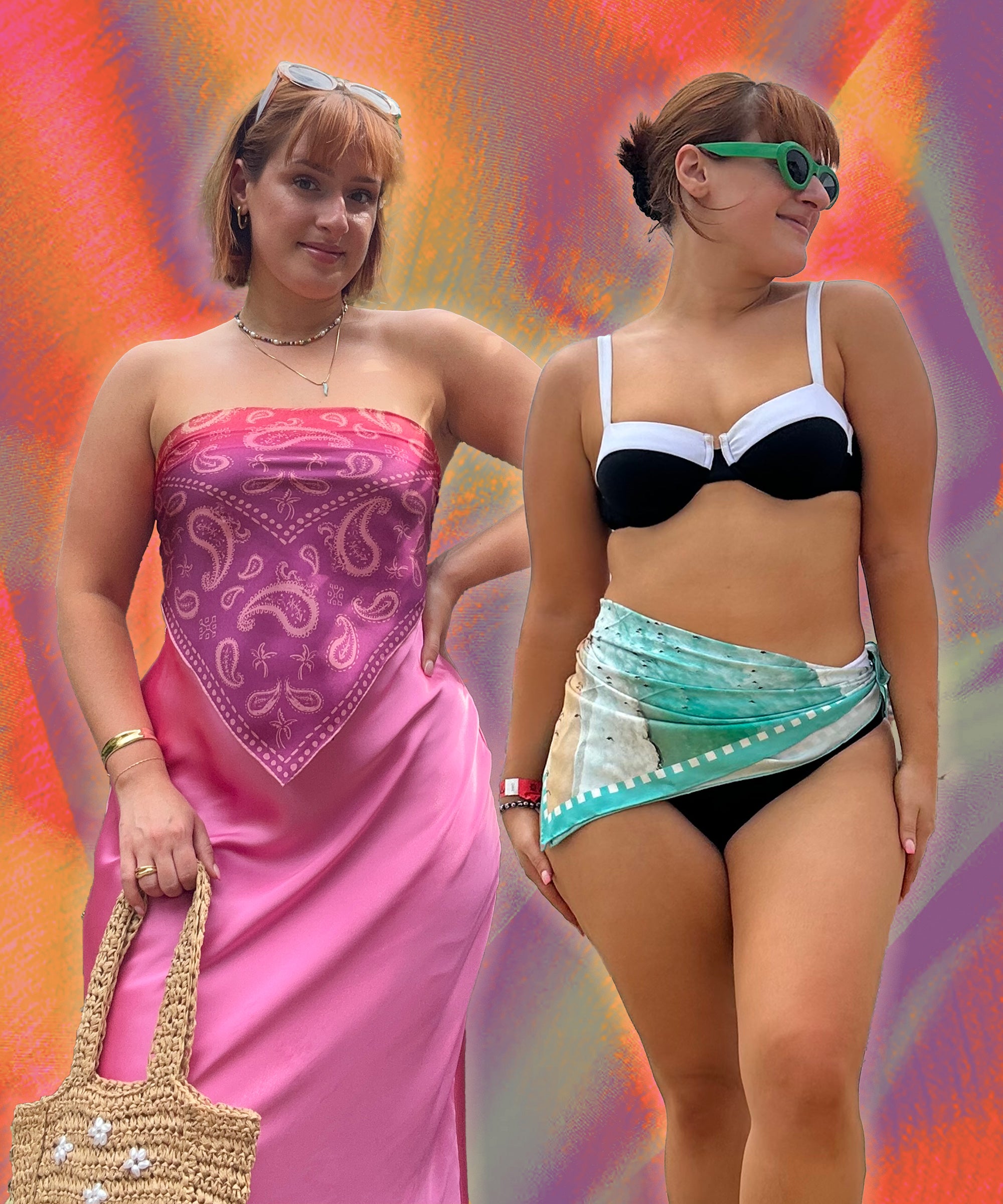 Read on to see how I styled two large square silk scarves for summer activities, like beach days and al fresco dinners, in different ways to get the most bang for my buck (and to prepare vacation outfits for my own trip).