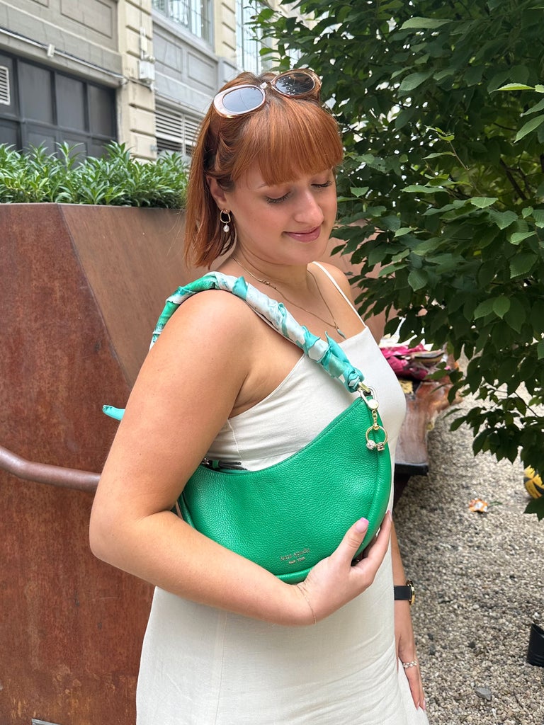 I’m guilty of habitually packing too many purses, for everything from long international vacations to short weekend trips, but a silk scarf may be the perfect solution for lighter luggage. Rather than cramming four different handbags into my suitcase, I can pack just one or two styles, along with one or two square scarves to transform them for different occasions and outfits. One of the simplest ways to upgrade your purse game is simply by tying a scarf in a knot around the bag handle. It’s a quick fix to look effortlessly chic (and one of my go-to styling moves, especially for my work bag and everyday crossbody bag).