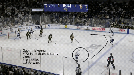 When NHL clubs are debating whether or not McKenna will be able to play centre in time they will no doubt monitor if he is being used in that role at Penn State, and see what his success rate looks like in the face-off dot along with his on- and off-the-puck detail defensively. At this point it’s pretty clear McKenna is a winger and not likely to be able play centre moving forward.