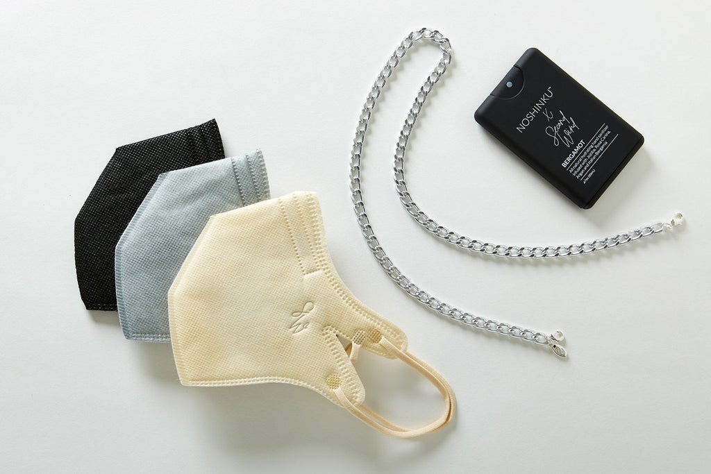 Retailing for $60, the bundle includes a three-pack of disposable masks — made from five-layer KN95 material — in the brand’s signature oat, sand, and black colors, as well as a TSA-friendly toiletry bag, a 7mm silver mask chain, and a pocket-size sanitizer created in collaboration with Noshinku. Ten percent of proceeds from the bundle will go to Give India, the country’s largest donation platform that has raised over $60 million toward COVID-relief efforts.