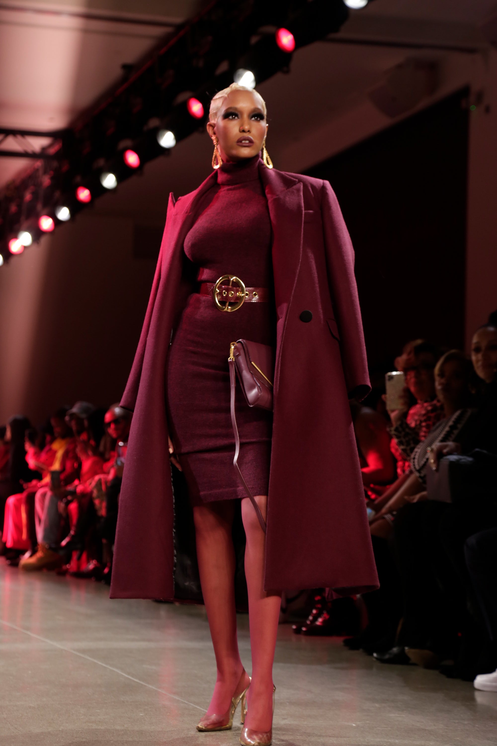 Although the minimal aesthetic that Hudson has cultivated will carry over in the collection, he’s branching out this season into a a risqué technique: prints. “You will see me stepping out a bit,” he says. “You will see how I do prints in my own way.” He describes the collection as a “fresh revival.” For his fall 2020 collection, Hudson started with houndstooth — a staple of the ‘80s and ‘90s — on two of his pieces. Still, the rest of his collection remained largely monochrome, which he says “is just the best way to look chic,” with head-to-toe burgundy, hot pink, gold, turquoise, and white looks.