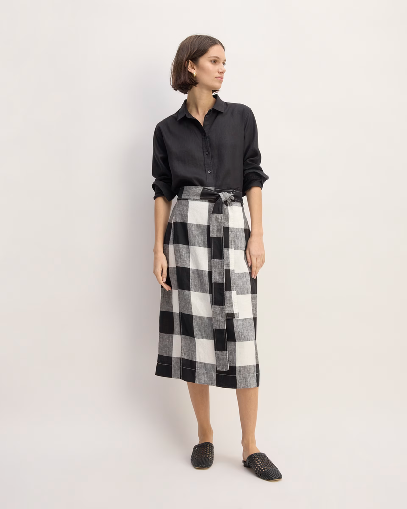 Beyond linen pants, linen shorts and skirts can round out your linen wardrobe. Pick between wrap or midi skirts and tailored or elastic-waistband shorts in a range of neutrals, black-and-white florals, and on-trend gingham prints. Pair your linen bottoms with any of Everlane’s tops, and you’ve got yourself an effortless summer outfit.