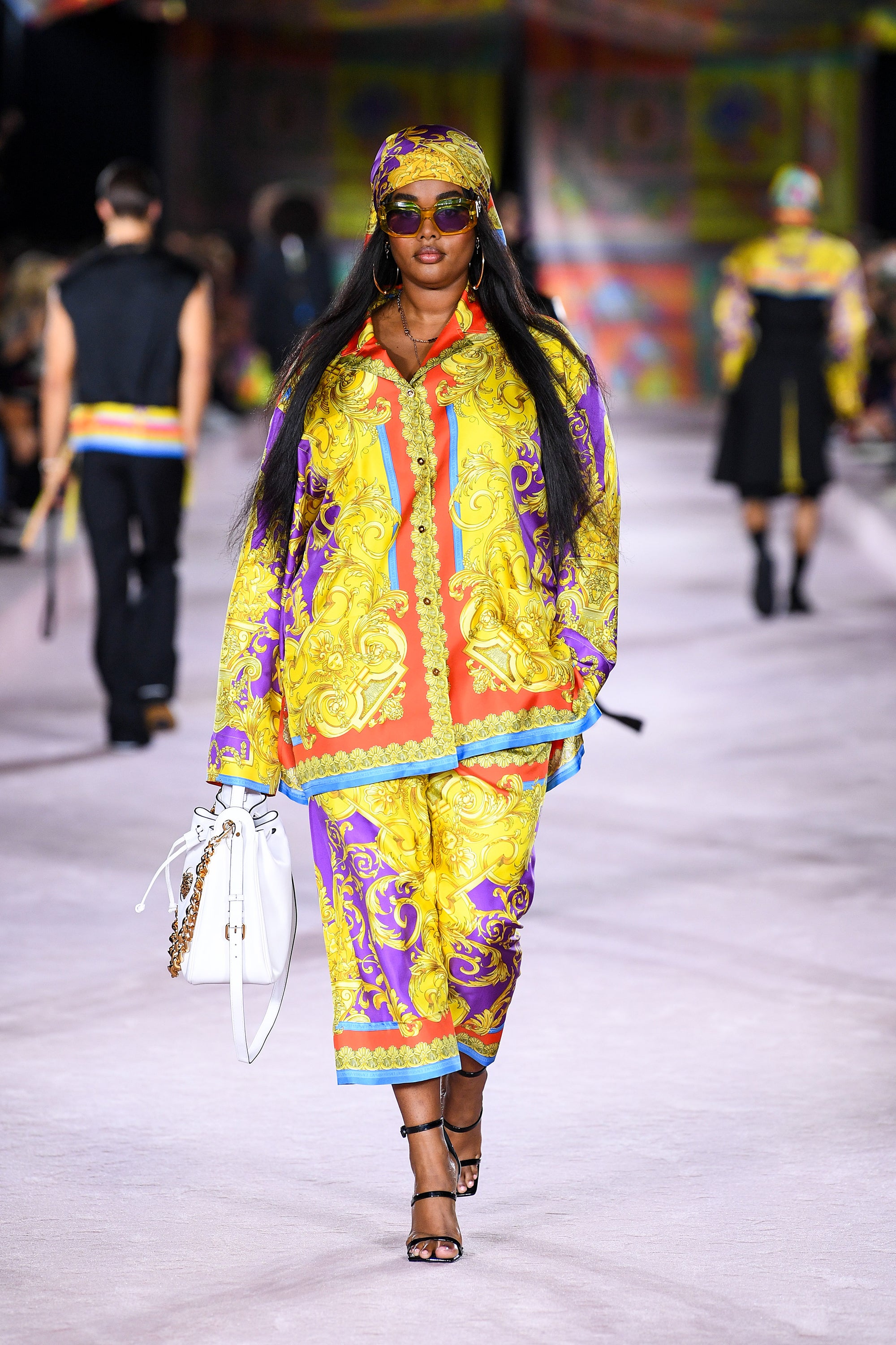 The Y2K bandana tops and scarves were all about extravagance, and this Barocco-style scarf serves exactly that.