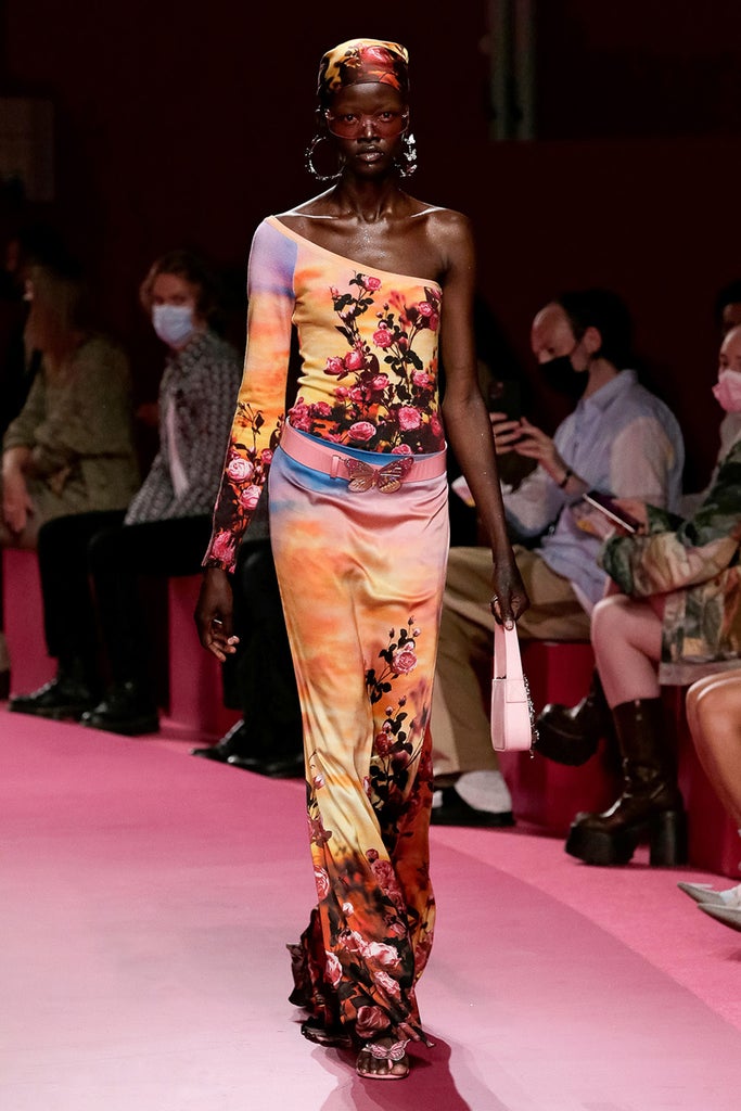 For confirmation, look to the spring/summer 2022 runways where Versace and Blumarine showed an array of silk scarves and scarf-like tops in bright hues. A staple of the Y2K era (see: Jennifer Lopez on the 2000 MTV VMAs red carpet), silk bandanas can be worn in a plethora of ways: as hair accessories, neck scarves, and, if the style is big enough, even strapless tops. Perhaps that’s why, no matter the trends of the moment, we keep coming back to them.