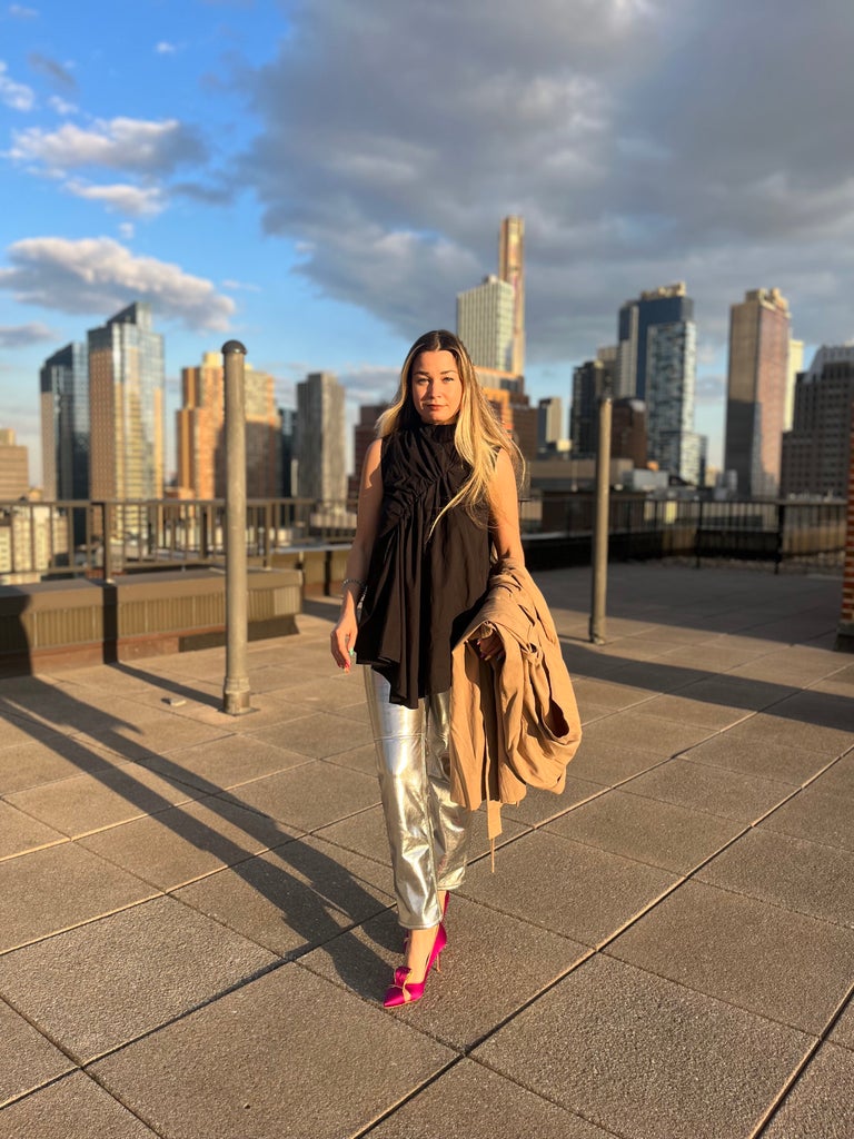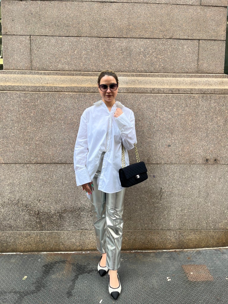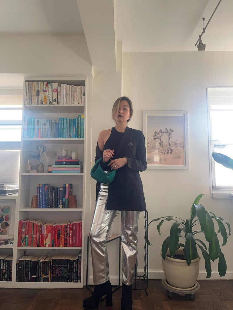 From a look that, yes, will get you crowned the night’s dancing queen to one that wouldn’t appear out of place at a farmer’s market on a Saturday morning, ahead, five ways to style silver metallic pants.