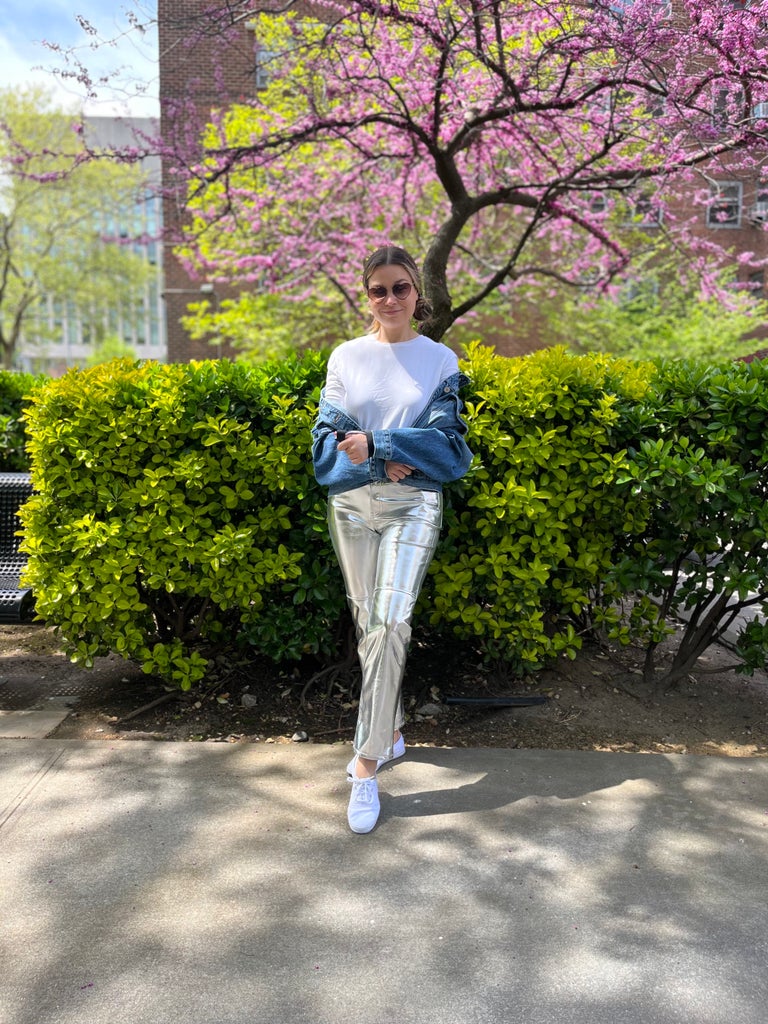 But the silver trend isn’t just for festivals or raves. After seeing Gap’s metallic pants take over TikTok, where the pair currently has 36M+ views, I styled the high-rise jean — which comes in regular, tall, and petite sizes and hits just at the ankle, making them perfect for pairing with flats or heels — for a variety of occasions.