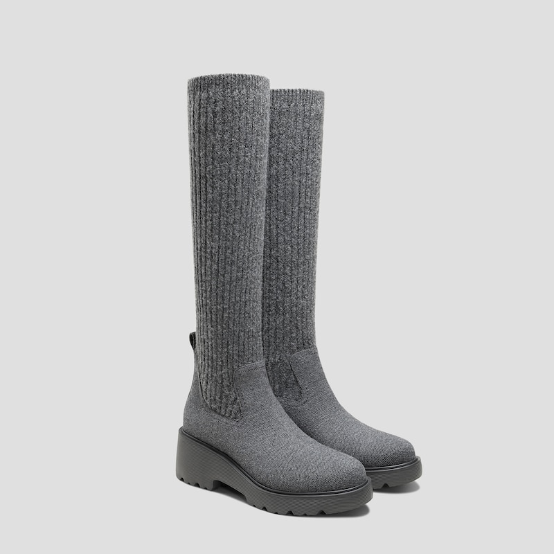 Vivaia Knee-High Platform Chunky Wool Wedge Boots