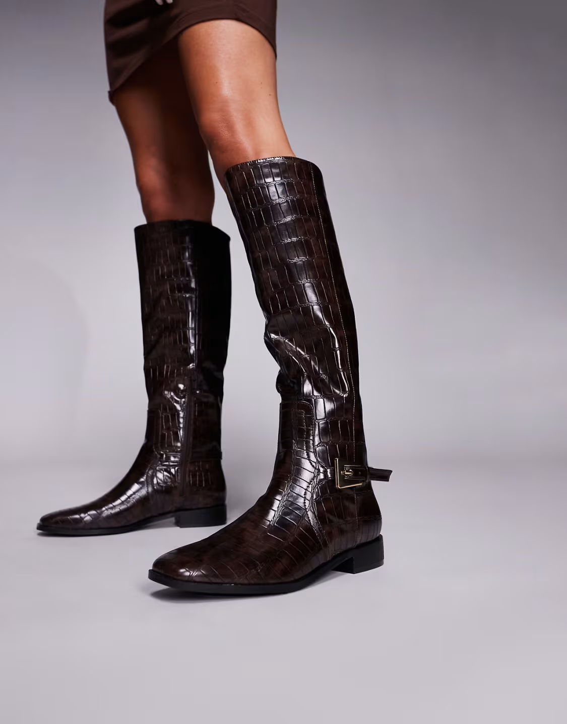 Looking for a practical, everyday boot? Flat soles are your best bet. Go for a flatform, chunky combat style, or classic riding boot — all offering comfort without skimping on style. Pair them with mini dresses, midi skirts, leggings, or wide-leg pants for endless versatility.