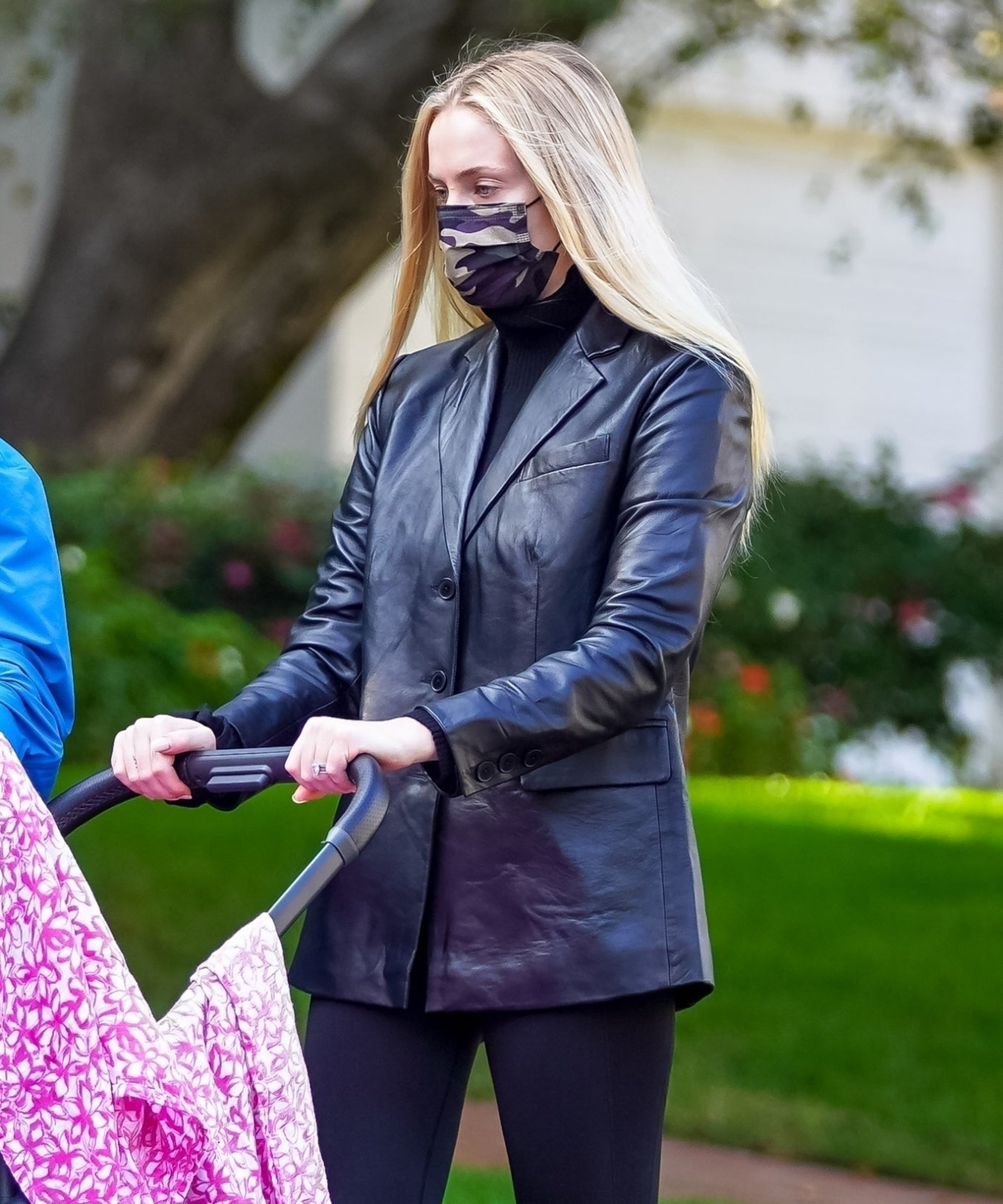 On Monday, Game of Thrones star and Louis Vuitton ambassador Sophie Turner took to Instagram stories to show off the contents of an unboxing: a pair of quilted boots courtesy of the luxury fashion brand. “These are killerrrr,” she wrote, tagging Louis Vuitton in a photo of her feet wrapped up in the slipper-like booties. The Queen in the North didn’t wait long to take them for a spin. That same day, Turner was photographed on a walk in Los Angeles, with husband Joe Jonas and the couple’s four-month-old daughter Willa, wearing the pair with one of fall’s most sought-after outerwear trends: a leather blazer.