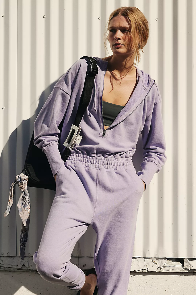 To channel Rodrigo in this song about a homeschooled student trying to overcome feelings of social alienation, consider styling a modern, more mature version of a school uniform. That could mean pairing a cropped cardigan with a pleated mini skirt and Mary Jane flats. Or if this song evokes the feeling of wanting to crawl into a ball and stay at home, opt for a sweatsuit uniform of sorts in Rodrigo’s favorite color, purple.